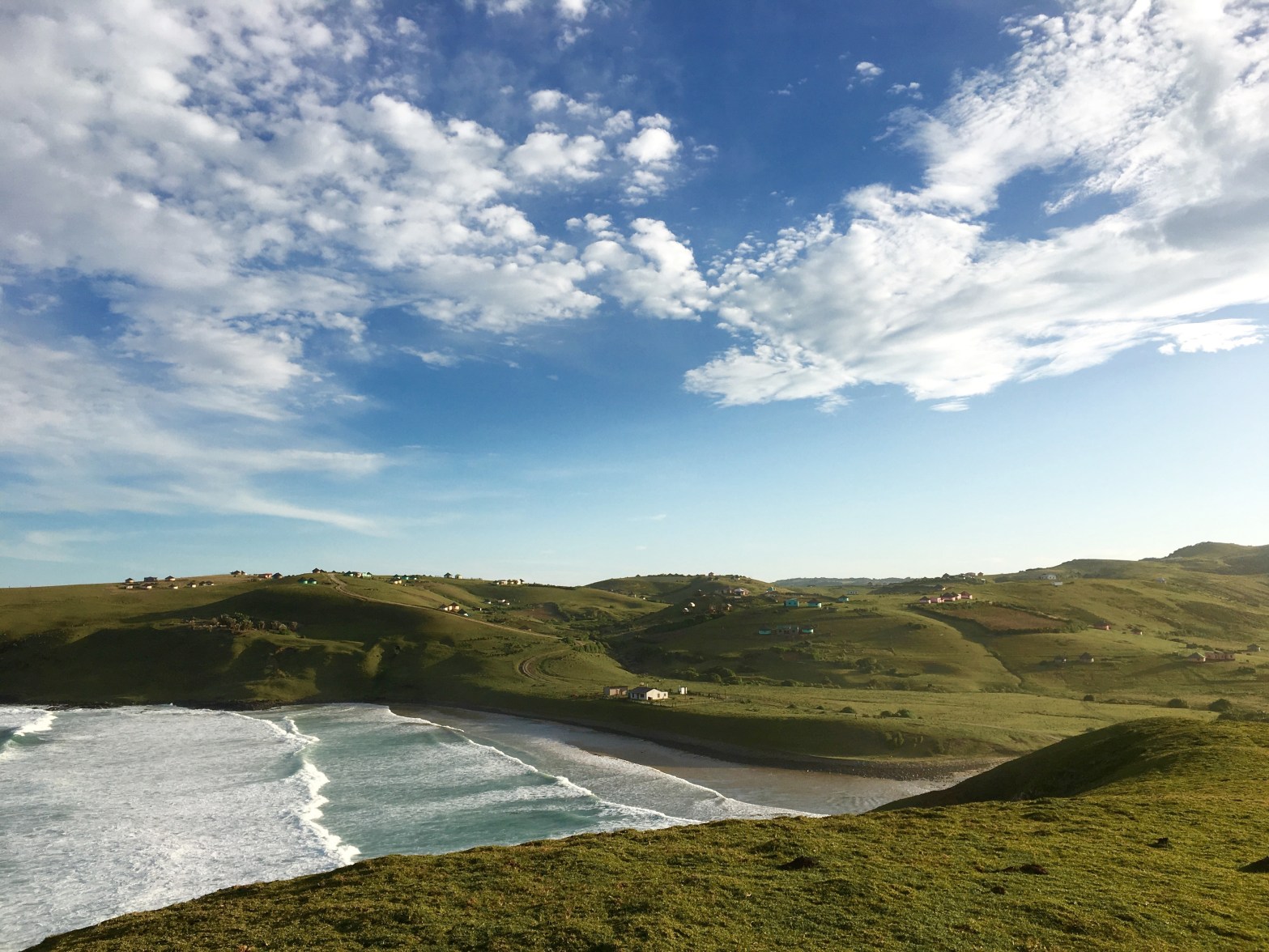 De glooiende groene heuvels krulde de oceaan in, de dolfijnen speelde met de golven, de bultruggen showde hun kunsten en de maan die knalrood uit de oceaan opkwam. De hike naar hole in the wall, de lokale bevolking die ons hielp met de weg, de kleurrijke rondavel’s en de schitterende sunrise’s op het terras voor onze tent.